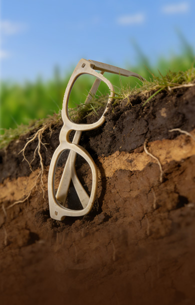 Renewable, biodegradable, and a stylish material for sunglasses.